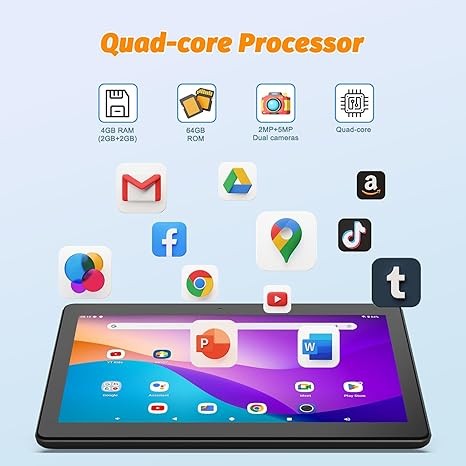 IDEAL BASIC TABLET - Not every task needs a flagship tablet. This Android tablet is budget-friendly, featuring a quad-core CPU and 4GB (2+2) of RAM, which ensures stable performance and seamless multitasking. It effectively eliminates annoying ads and provides complete management control