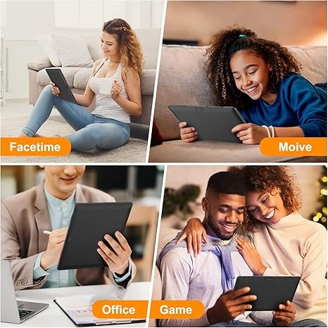 WIFI 6 & Bluetooth 5.2 - M1041A android tablet features a 10-inch display and incorporates the latest WiFi6 technology and the upgraded bluetooth 5.2. Dual band integrated chips enhance the 5g WiFi and 2.4g WiFi connections. Additionally, the lastest Bluetooth 5.2 connection supports all your favorite accessories, significantly increasing the speed of data transfer speeds, improving network capacity, and reducing latency