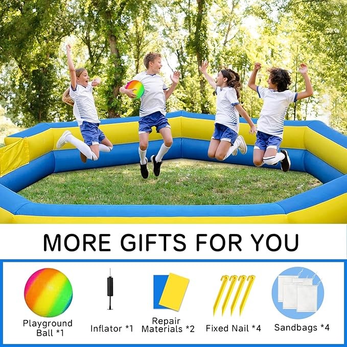 • ⚽【Durable Fabric】- The gaga ball pit features high-strength heavy-duty oxford fabric and PVC on the bottom, which is wear-resistant, drop-resistant, pressure-resistant, waterproof, ensuring safety and long-lasting fun for you with inflatable gaga ball pit.