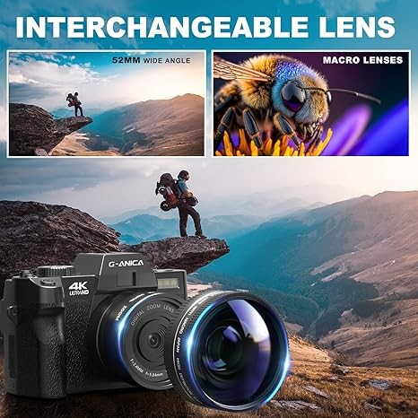 • 【Wide Angle & Macro Lens Camera】:The 4K digital camera is equipped with professional detachable 52mm wide-angle lens and macro lens, so this camera is very suitable for easily capturing a wide field of vision, and macro lens captures the diversity of small world. Help you record more beautiful moments in life. Make taking photos even more interesting