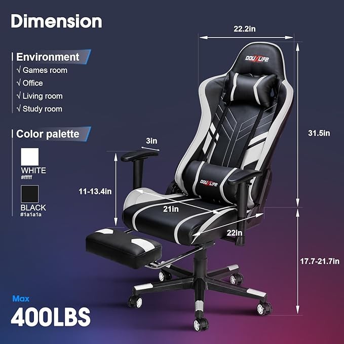 • After-Sales Service:Douxlife is dedicated to creating better gaming chairs for customer. We provides installation guidance. If you have any questions, contact after-sales service, we will promptly resolve issues and provide replacement parts if necessary