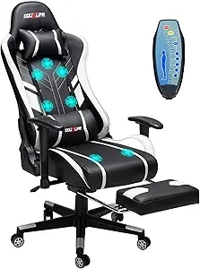 • Upgraded Materials for Enhanced Durability: The video gaming chair features a high-strength iron frame, the upgraded base ensures greater stability. Is wrapped in PU leather, waterproof, easy to clean. Thick foam delivers a more comfortable experience