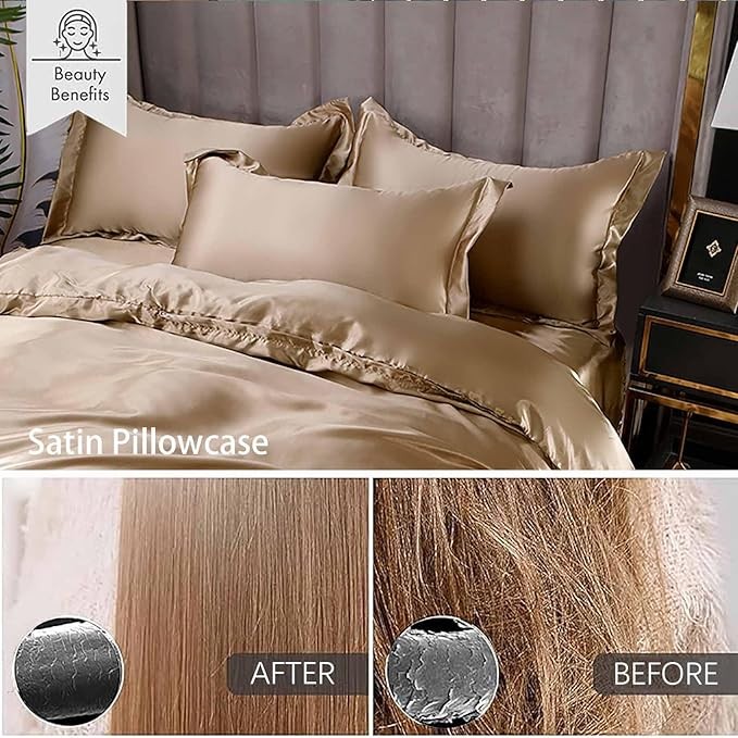 EASY CARE - Machine wash separately in cold water, gentle cycle, tumble dry low. Do not bleach. Please be careful to scratch the sheets. Polyester satin is a great alternative to silk, unique dyeing technology makes colors more vibrant, stain and fade resistant, won't wrinkle and easy to care for. (NOTE: This is a duvet cover set and does not include a liner or filler.)