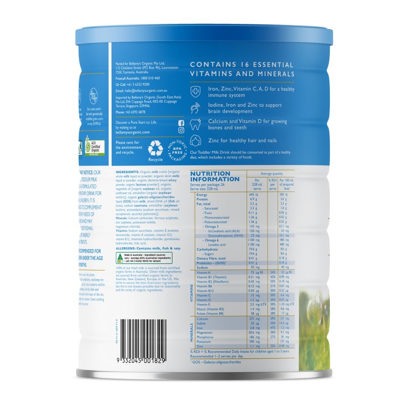 Bellamy's Organic Step 3 Toddler Milk Drink (12+ months) 900g x 6