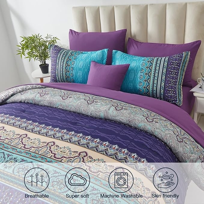 【Unique Design】The boho comforter is printed with aqua and purple chic pattern,which perfectly blends bold and vibrant colors to brighten your home with a clean and fresh look.Ideal for decorating your bedroom.