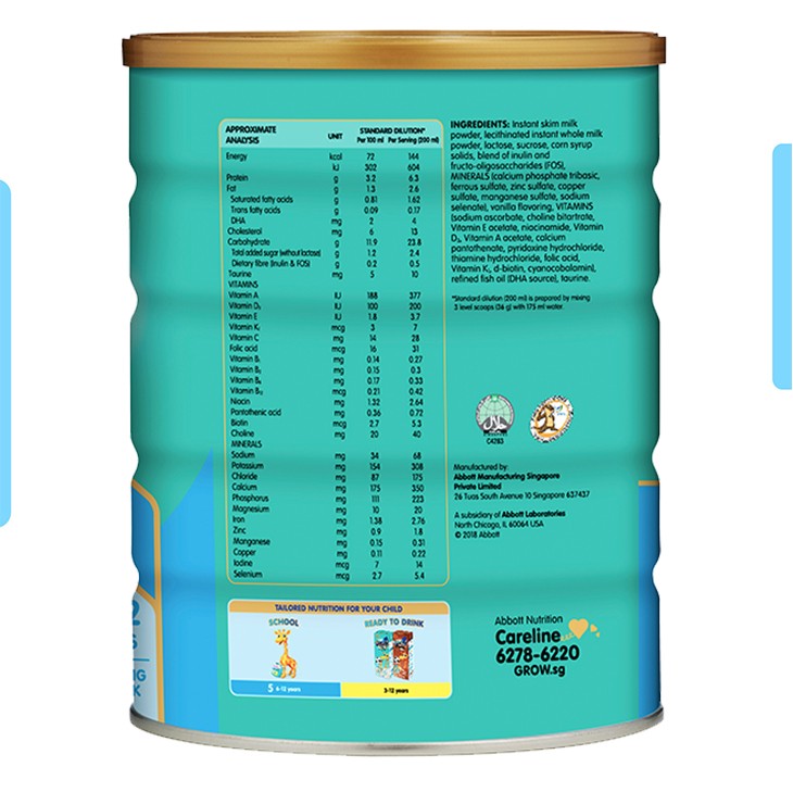[Bundle of 2] GROW Growing Up Milk for Kids - School Stage 5 (6 - 12 years) - 900g