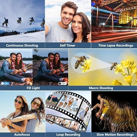 • 【Multifunctional Point and Shoot Digital Cameras】The 4k digital camera for photography is multifunctional in that it has four photo modes(Continuous shooting/Timed shooting/Auto photo mode/Normal photo mode)and four video modes(Time lapse recording/Loop recording/Slow motion recording/Normal video mode), along with a variety of filters. One camera can fulfill all your photography needs
