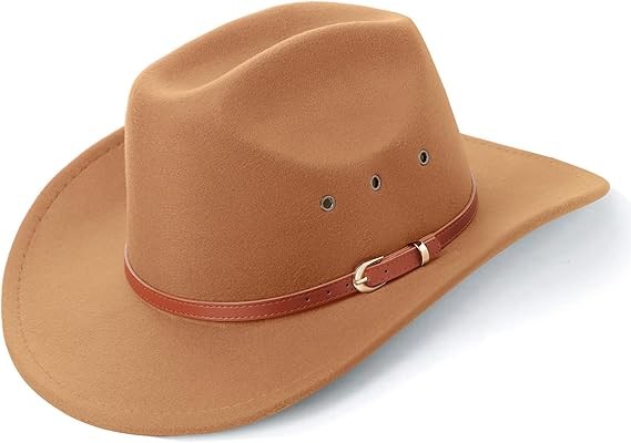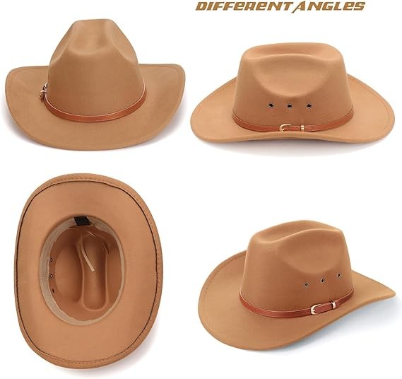 DRESHOW Cowboy Hat for Women and Men Western Felt Cowboy Cowgirl Hat Wide Brim Belt Buckle Retro Fedora Hats Unisex Caps
