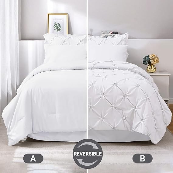 • [Elegantl Design]: These queen-size comforter sets are designed in a pinch pleated style that perfectly combines fashion and beauty. The pintuck and ruffled design on the two pillow shams add unique and fashionable taste to your bedroom.
