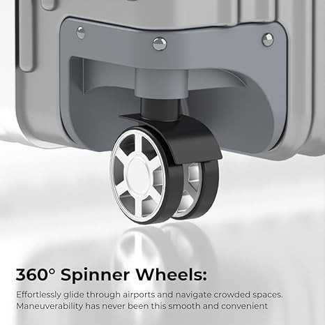 ☑️ Effortless Maneuverability with 360° Spinner Wheels: Navigate through bustling airports and train stations effortlessly with our luggage's four multi-directional swivel wheels. These wheels evenly distribute weight, ensuring a smooth and quiet glide. The double wheel design enhances durability, promising a seamless travel experience.