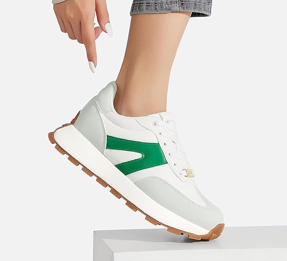 LUCKY STEP Women's Platform Fashion Sneakers Retro Classic Trainers Casual Lace-up Stylish Tennis Running Walking Shoes