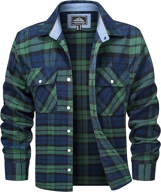 • Design: Shirts with 2 chest pockets, enough for storing essentials; Rounded hem; Double-button barrel cuffs; Cotton flannel fabric long-lasting wear.
