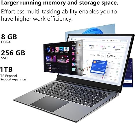 The laptop is equipped with 8GB high-speed RAM memory, 256GB SSD storage and supports 1TB TF card expansion, so that you have enough space to run various programs and applications smoothly