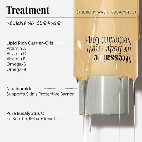 Nécessaire The Body Wash Eucalyptus - Natural Body Wash for Women & Men, Replenishing Shower Gel with Niacinamide, Vitamin C/E + Omega 6/9. Oil-In-Gel Cleanse, 8.4 fl oz.