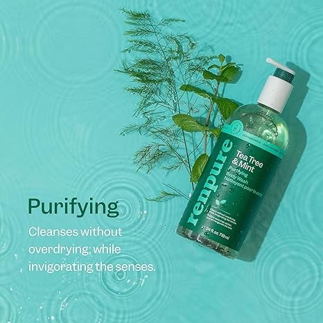 • Renpure Tea Tree & Mint Purifying Body Wash cleanses and refreshes your skin, infused with cooling Spearmint Leaf Oil and clarifying Tea Tree Oil to invigorate the senses while gently cleansing without over-drying. 2 x 24 Fl Oz bottles.
