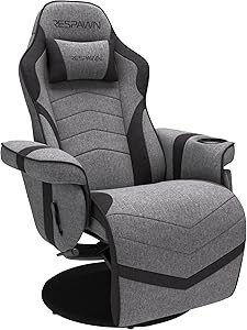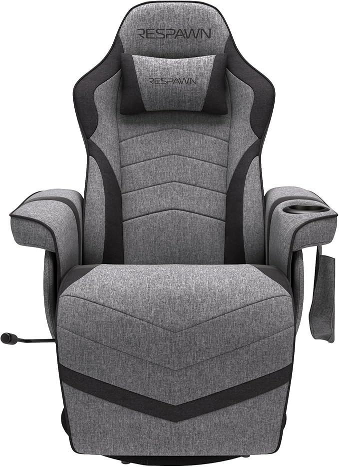 RESPAWN 900 Gaming Recliner - Video Games Console Recliner Chair, Computer Recliner, Adjustable Leg Rest and Recline, Recliner with Cupholder, Reclining Gaming Chair with Footrest - Gray Fabric