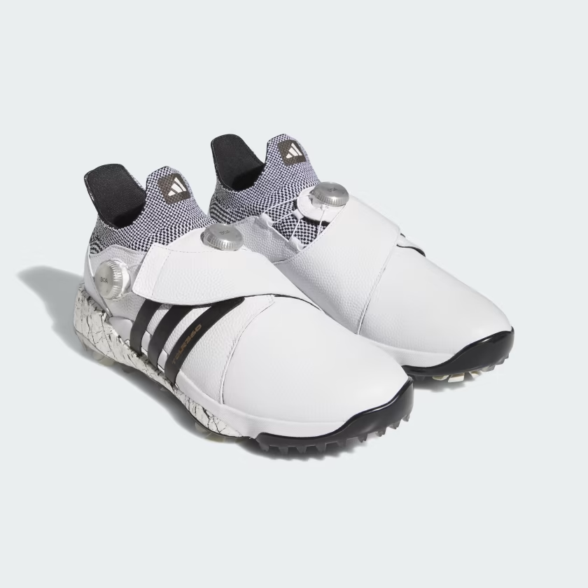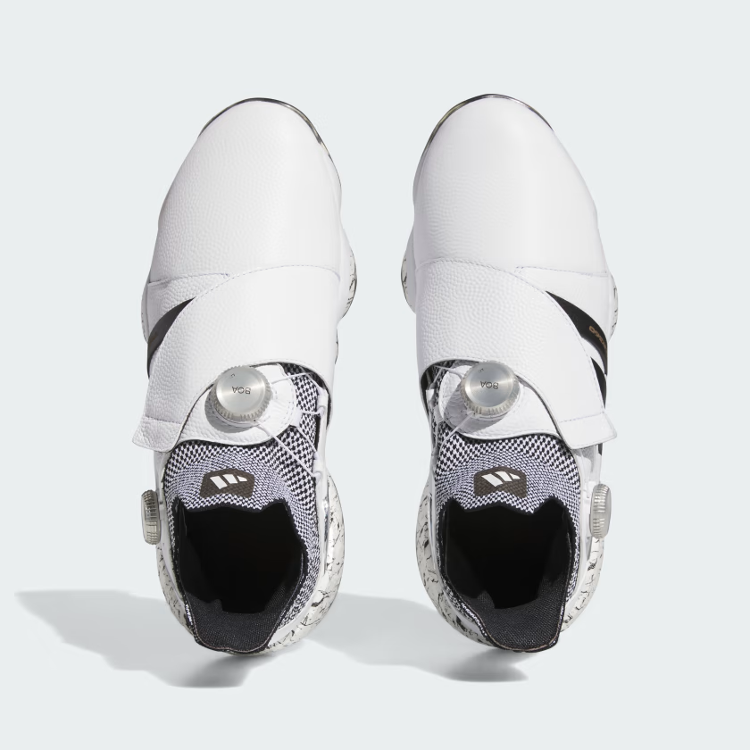 Confidence is both skill and attitude. The adidas Tour360 22 Twin BOA BOOST Golf Shoe gives you the competitive edge you need to lead the course with a combination of refined style and groundbreaking performance. The Twin BOA® Fit System lets you fine-tune your fit and support with two dials to adjust your stance. The premium leather and adidas PRIMEKNIT collar hug your foot for comfort so you can focus on reducing your strokes. The BOOST and EVA midsole energizes every stride, while the six-stud outsole with fixed studs provides stability and traction as you follow through your swing. Take on the tournament with confidence to lead.