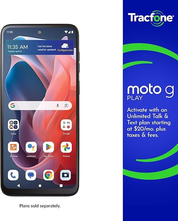 Tracfone | Motorola Moto g Play 2024 | Locked | 64GB | 5000mAh Battery | 50MP Quad Pixel Camera | 6.5-in. HD+ 90Hz Display | Sapphire Blue