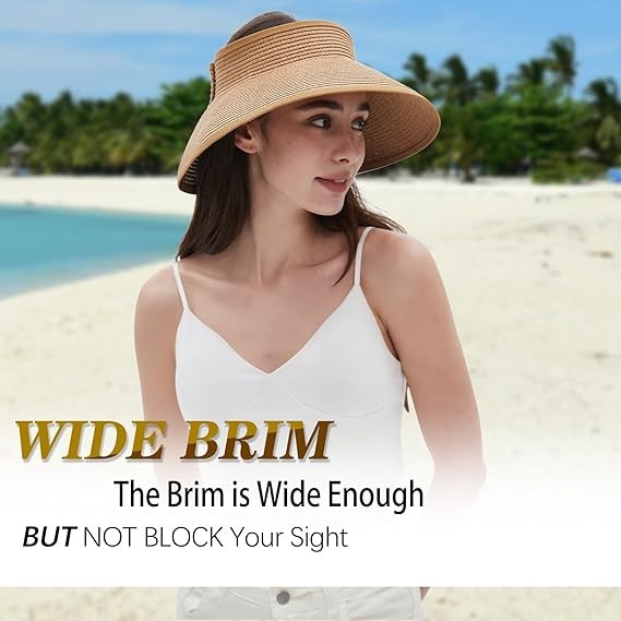 • Summer Sun Visor Hat - The straw sun hat is made of high-quality material and gives you great sun protection all over your face and neck and the neutral color lets you match anything.